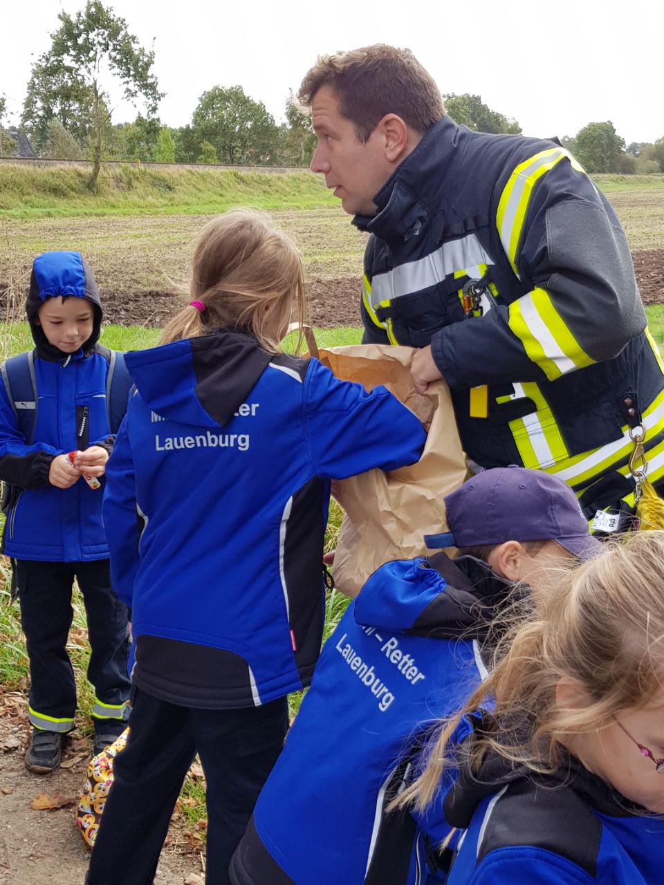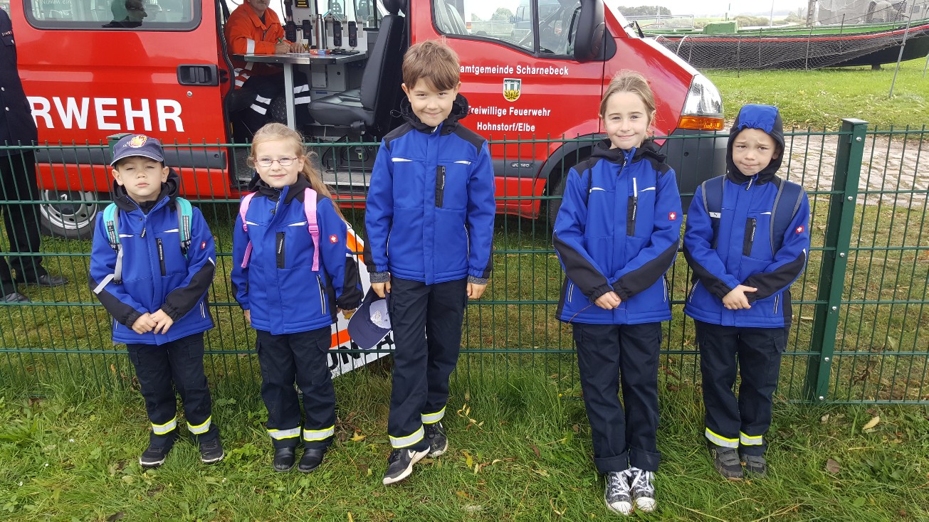 Zusammen mit einer Gruppe der Jugendfeuerwehr starteten die Mini-Retter am 03. Oktober um 10:30 Uhr in Richtung Hohnstorf zum diesjährigen Elbmarsch. Wie auch im Vorjahr waren die Mini-Retter mit zwei Gruppen mit je fünf Kindern angetreten. Auf einem Rundmarsch von ca. 5 km Länge mussten an verschiedenen Stationen Aufgaben bewältigt werden. Angefangen mit Zöpfe flechten (aus Lakritzschnecken), Geschicklichkeitsübungen, Puzzlen, Dosenwerfen, Quizfragen, bis hin zu Wasserspielen und Jenga wurden alle Aufgaben mit Erfolg gelöst. Auch wenn das Wetter diesmal nicht ganz mitspielte, so waren doch alle Mini-Retter zufrieden mit dem Verlauf des Wettstreits. Mit Grillwurst oder Pommes wurde die Zeit bis zur Siegerehrung verkürzt. Am späten Nachmittag traten alle Kinder und Betreuer erschöpft den Heimweg an.