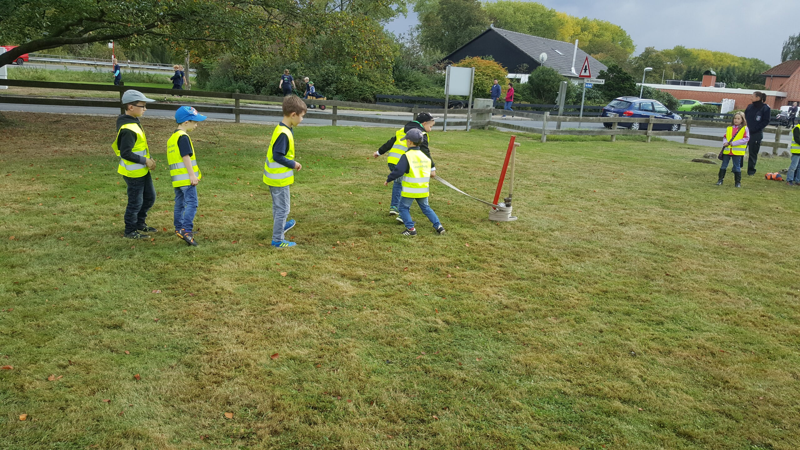 Wie auch die Lauenburger Jugendfeuerwehr nahmen am 3. Oktober 2016 die Mini-Retter am Elbmarsch der Kinder- und Jugendfeuerwehr Hohnstorf teil. Auf einem Rundweg mussten an neun Stationen verschiedene Aufgaben gelöst werden. Neben Geschicklichkeit und Allgemeinwissen war vor allem Ausdauer auf der ca. fünf Kilometer langen Strecke gefragt. Die Mini-Retter nahmen mit zwei Gruppen teil. Insgesamt waren 17 Gruppen aus Kinderfeuerwehren und 16 Gruppen aus Jugendfeuerwehren mit am Start. Gegen 11:30 Uhr ging es an der Schule in Hohnstorf los und entlang des Elbdeichs zur ersten Station. Mit Murmeln wurde als erstes die Geschicklichkeit geprüft. Über eine schräge Bahn mussten verschieden große Öffnungen getroffen werden. An der zweiten Station wurde Montagsmaler gespielt und an der dritten Fahrzeuge verschiedener Hilfsorganisationen auf Zeit zusammen gepuzzelt. Als nächste Aufgabe mussten die Kinder Fragen zum Allgemeinwissen beantworten. An der fünften Station wurde ein Tischtennisball mit Strohhalmen durch ein Labyrinth gepustet und bevor es an der sechsten Station eine kleine Stärkung und Getränke gab, galt es, sich innerhalb von einer Minute möglichst viele Gegenstände zu merken und später wieder aufzuzählen. Es folgten eine „Schaumkuss-Wurfmaschine“, die nur auslöst, wenn man mit einem Tennisball die richtige Stelle trifft, ein Schlauch, der auf Zeit um einen im Boden befestigten Stab gewickelt werden musste und zum Schluss Stelzenlaufen. Vor der Siegerehrung gab es noch Getränke, Kuchen oder Grillwurst und die Kinder hatten Zeit den Spielplatz auf dem Schulhof ausgiebig zu erkunden. Nach einem anstrengenden Tag, den alle Mini-Retter tapfer bestanden haben, konnte gegen 16 Uhr die Heimreise angetreten werden.
