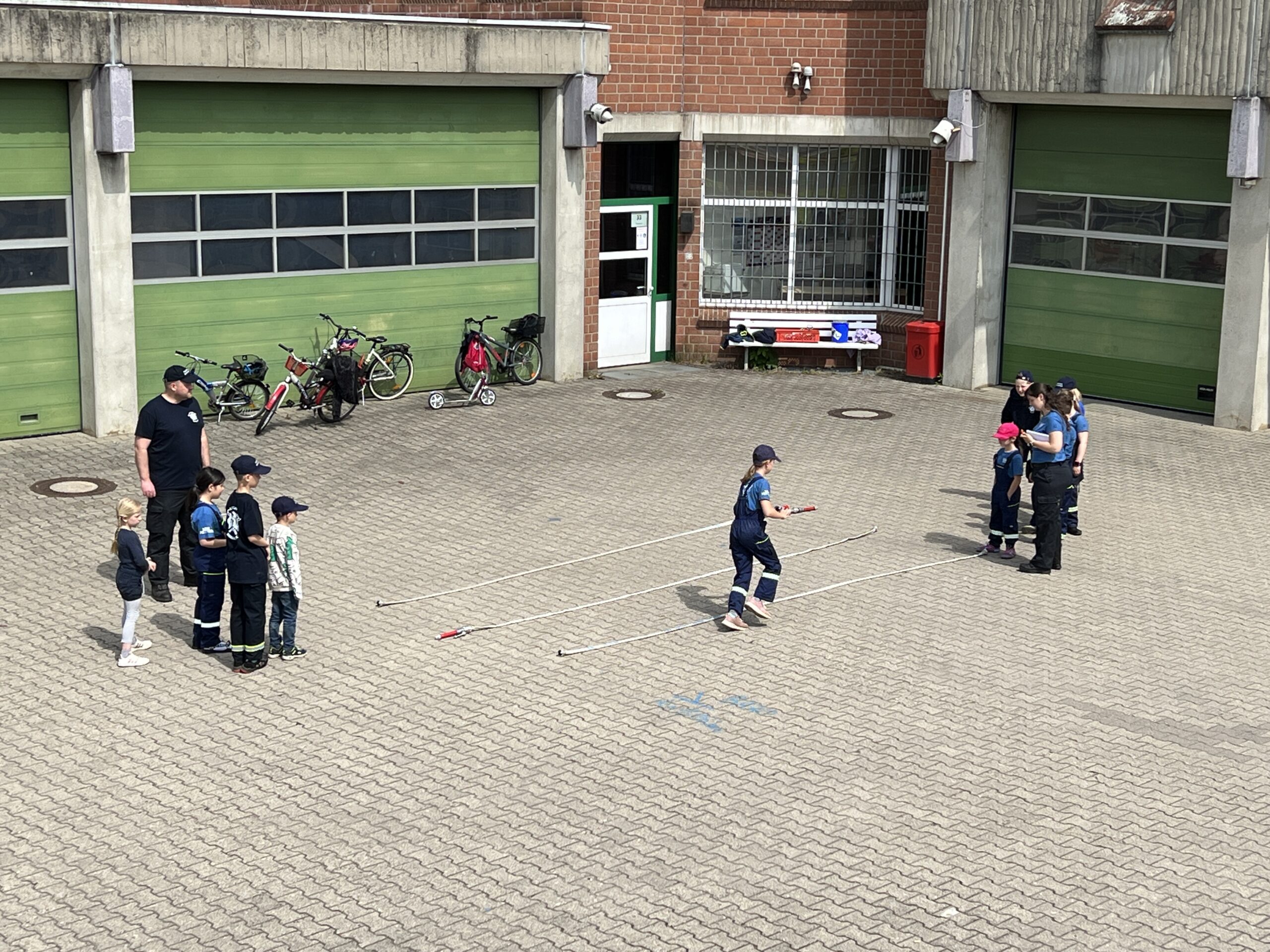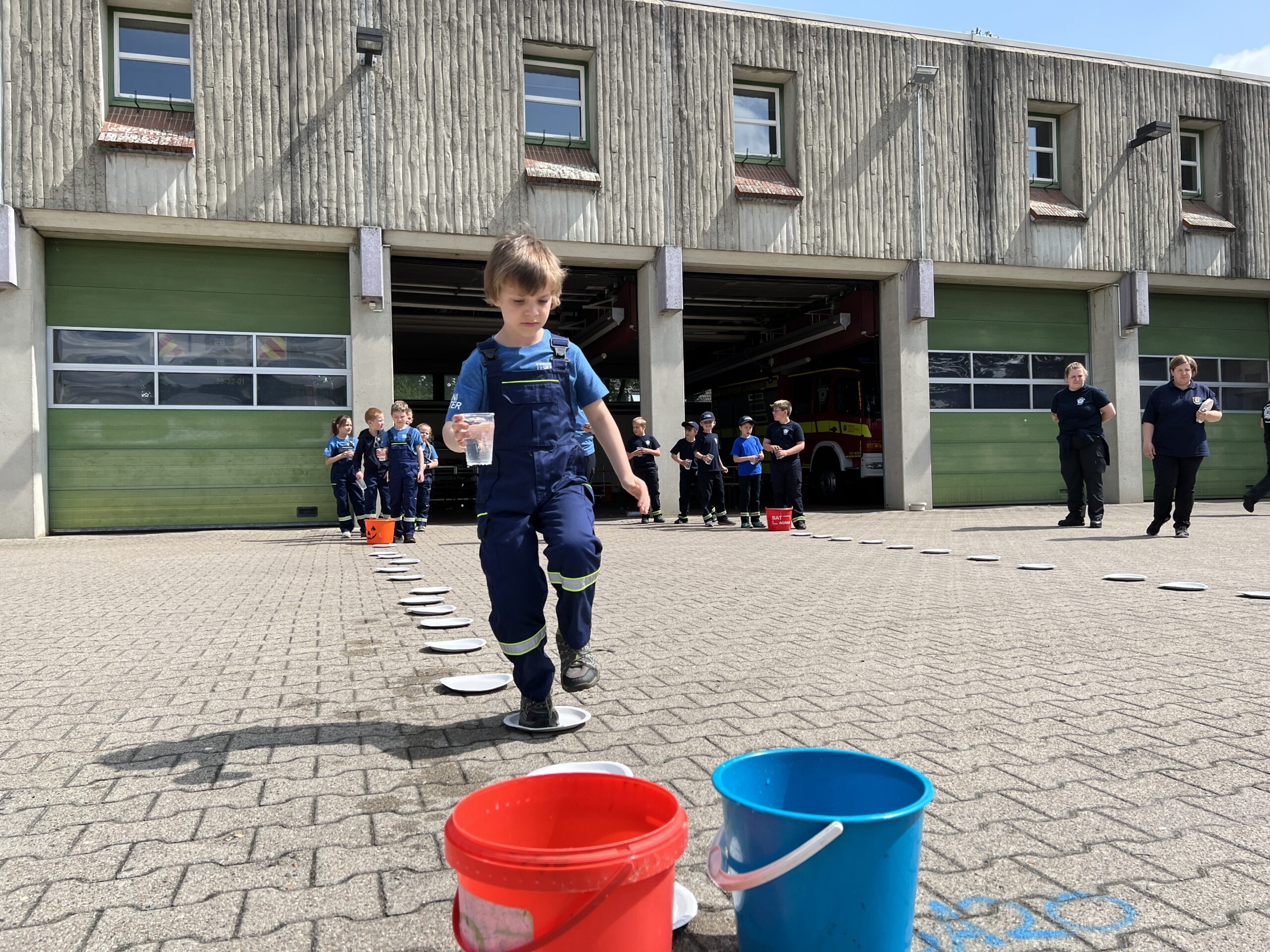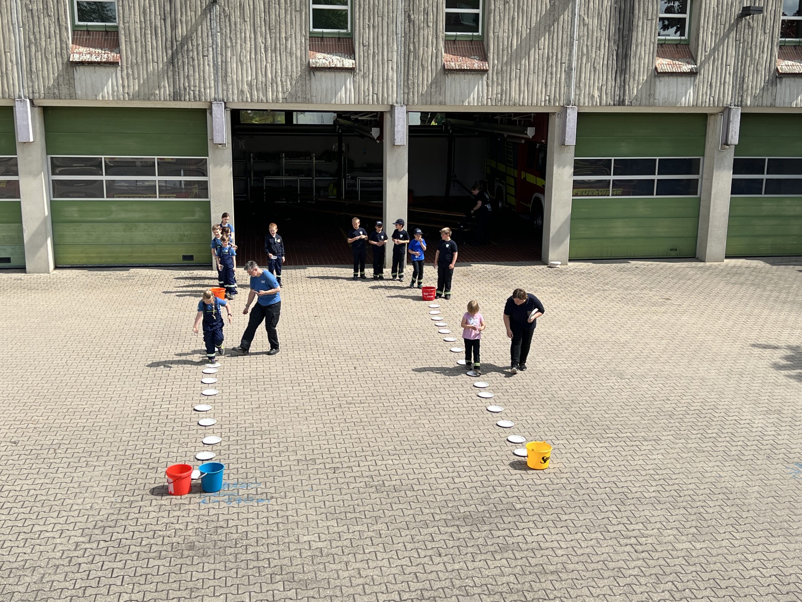 Bei herrlichem Sonnenschein fand der erste gemeinsame Dienst der Kinderfeuerwehren aus Lauenburg und Schnakenbek statt. Um 11 Uhr ließ Anja Pätzold alle Kinder antreten. Ein Buntes Programm wurde von den Betreuern ausgearbeitet. Es gab unterschiedliche Stationen, an denen Aufgaben als Team abgearbeitet werden mussten. Drei gemischte Gruppen wurden gebildet und dann ging es auch schon los. Unter anderem mussten die Kinder Wasser von Eimer zu Eimer transportieren. Dabei mussten sie von ausgelegten Papptellern balancieren. Bei der Schnelligkeitsübung musste ein Strahlrohr möglichst schnell von der einen Seite des Schlauches zu anderen gebracht und angekuppelt werden. Zwischen den ganzen Spielen wurden immer wieder Trinkpausen eingelegt. Nachdem alle Gruppen jede Station einmal ausprobiert hatte, konnte die Kinder noch ein wenig sich selbst zusammen beschäftigen. Dafür wurde extra eine Spieletonne vom Kreisfeuerwehrverband organisiert, wo viele verschiedenste Bälle und andere Spielmöglichkeiten drin waren. Aber auch eine kleine Stärkung durfte nicht fehlen. Deshalb wurde zum Abschluss noch gemeinsam Pizza gegessen.
