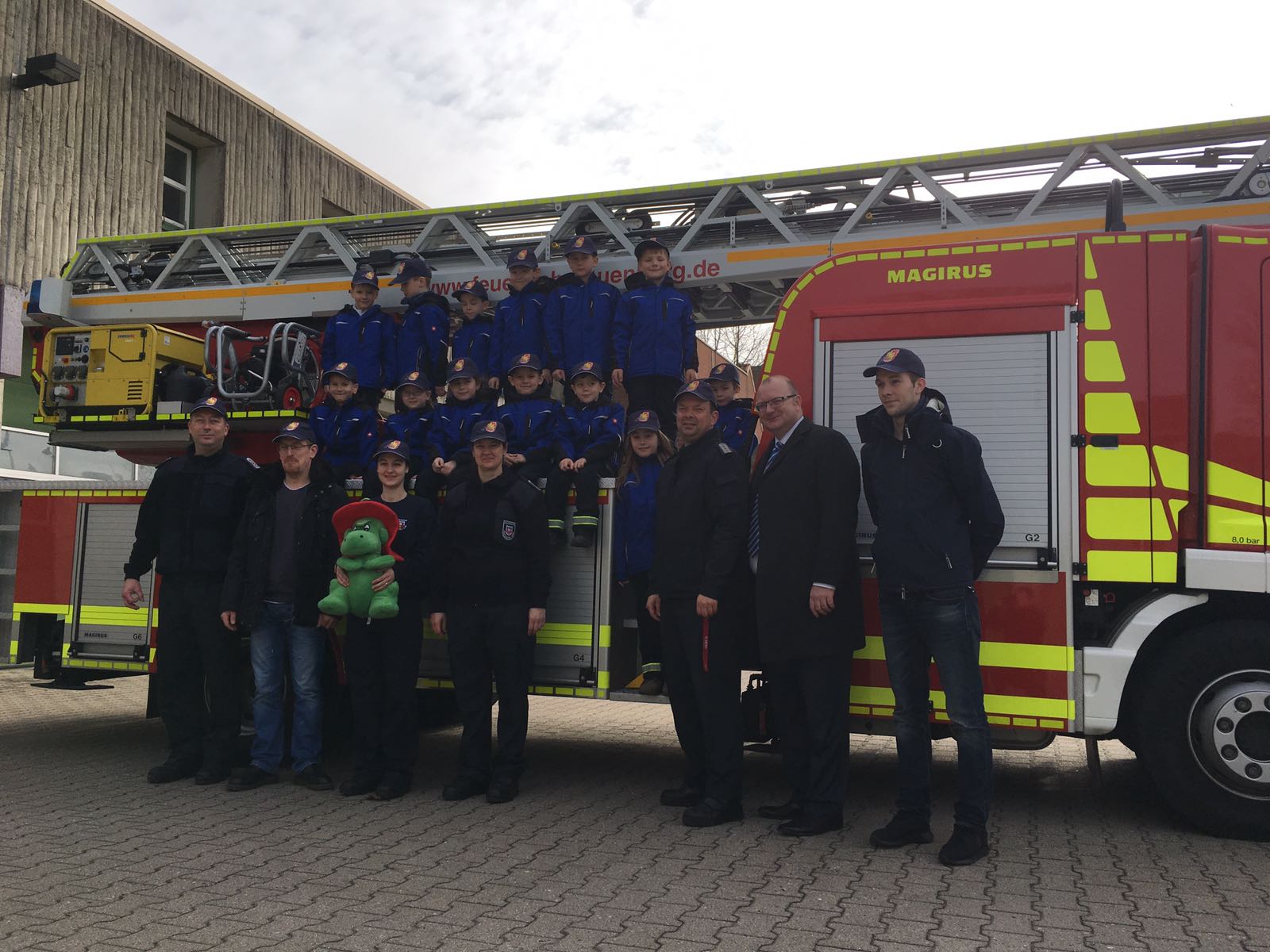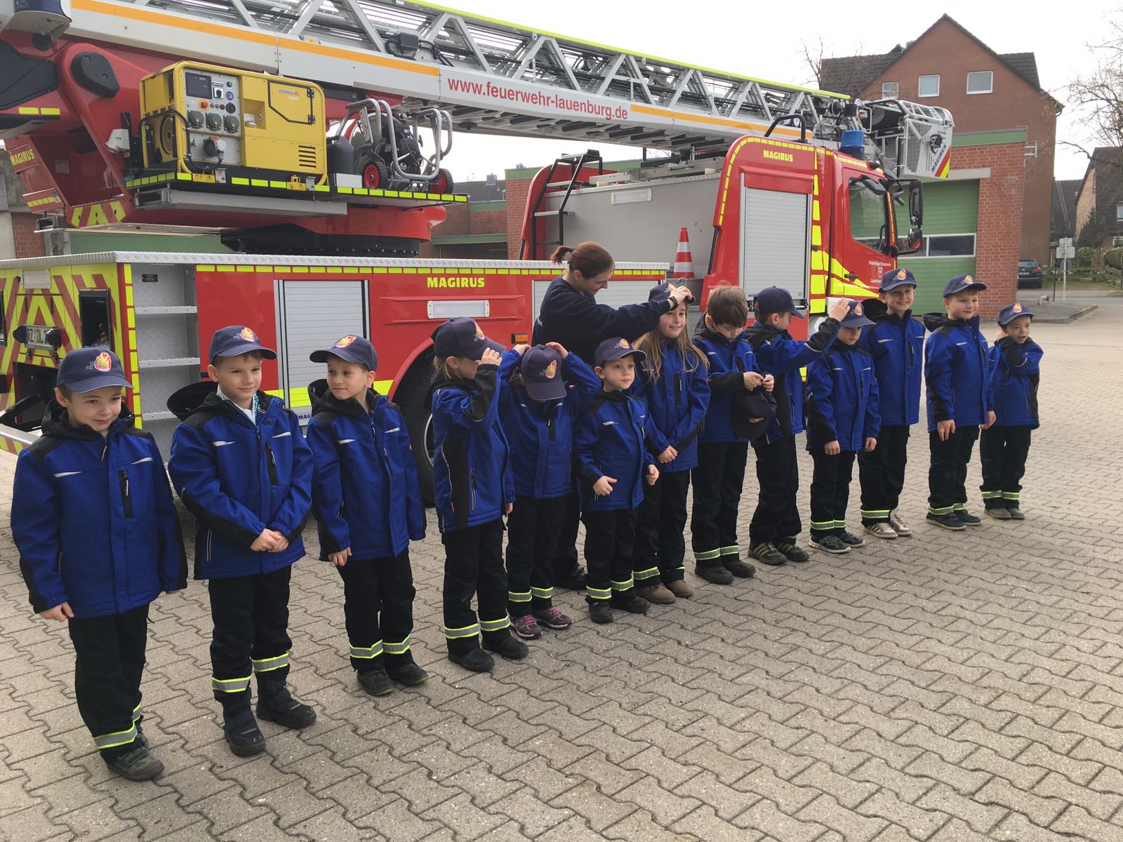 Am Samstag, den 11. März 2017, wurden die Mini-Retter während des Dienstes überrascht. Mit freundlicher Unterstützung von Guido Landsmann von der Provinzial wurden neue Caps mit dem Logo der Mini-Retter angeschafft. Wehrführer Lars Heuer und Herr Landsmann kamen zum regulären Dienst der Kinder und übergaben die Caps. Das zufällig auf dem Hof bereit stehende Drehleiterfahrzeug wurde für ein paar schöne Fotos genutzt.