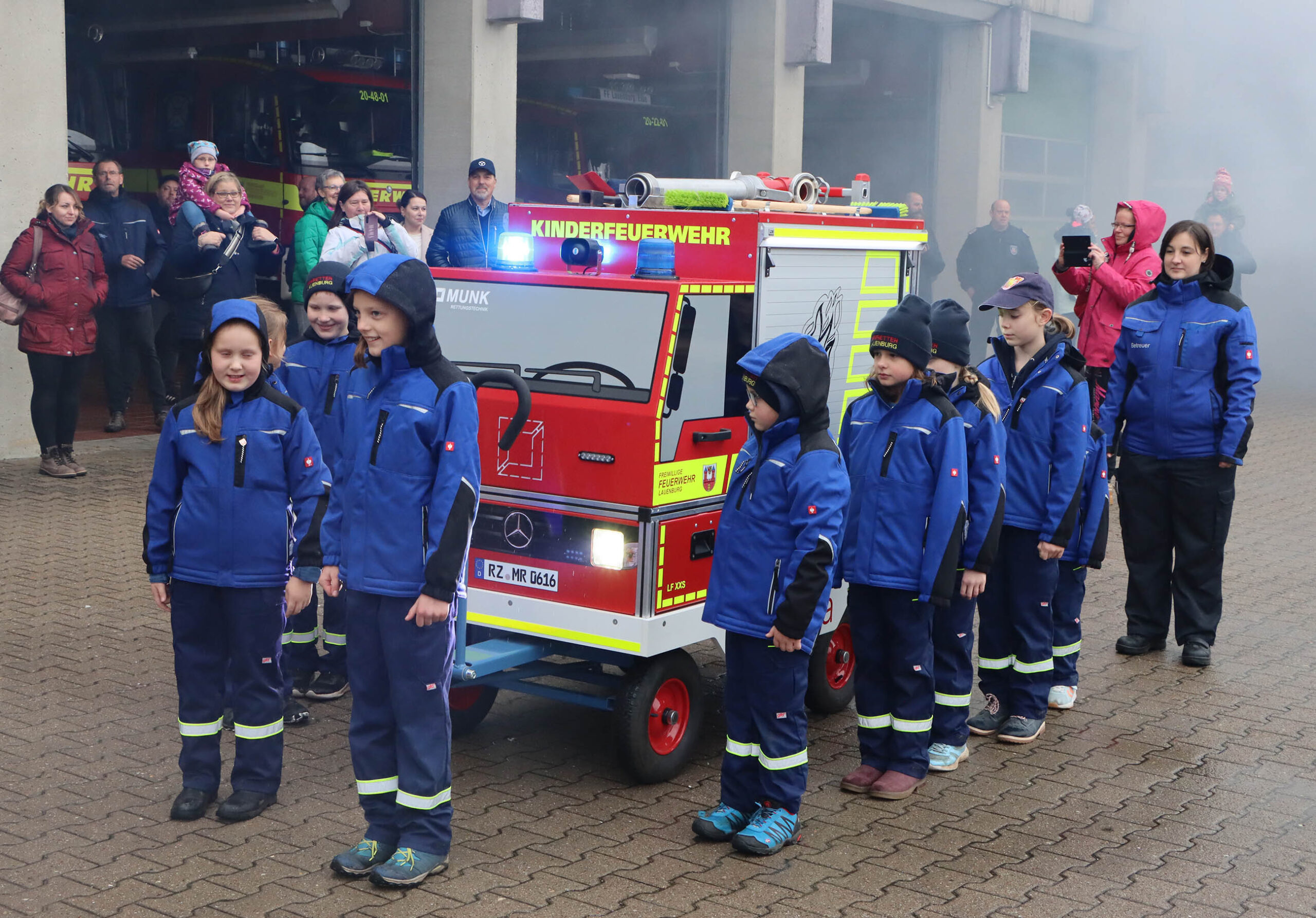 Auch wenn noch nicht ganz Weihnachten ist, konnten sich die Mini-Retter trotzdem jetzt schon über ein ganz besonderes Geschenk freuen. Heute wurde das neue Minilöschfahrzeug offiziell an die Kinderfeuerwehr übergeben. Möglich gemacht wurde diese Anschaffung durch den Förderverein der Feuerwehr Lauenburg, die MEWA Lauenburg und die Kreissparkasse Herzogtum Lauenburg. Der Plan für ein solches Fahrzeug schwebte schon länger der Leiterin Anja Pätzold vor und nun konnte dieser Wunsch in Erfüllung gehen. Bei dem Minilöschfahrzeug handelt es sich um einen Rollcontaineraufbau auf einem Bollerwagengestell von der Firma Munk. Wie bei einem echten Feuerwehrfahrzeug auch ist das Minilöschfahrzeug mit Blaulicht, Martinhorn und Umfeldbeleuchtung ausgestattet. Beladen ist das Fahrzeug mit feuerwehrtypischem Gerät in Kinderausführung. Auch eine Wasserabgabe ist mit diesem Fahrzeug möglich. Es hat eine Schnellangriffshaspel mit 20m Schlauch verlastet. Mit diesem Fahrzeug haben die Mini-Retter die Möglichkeit, kindgerecht die Aufgabengebiete der Feuerwehr besser kennen zu lernen und selbst durchzuführen.