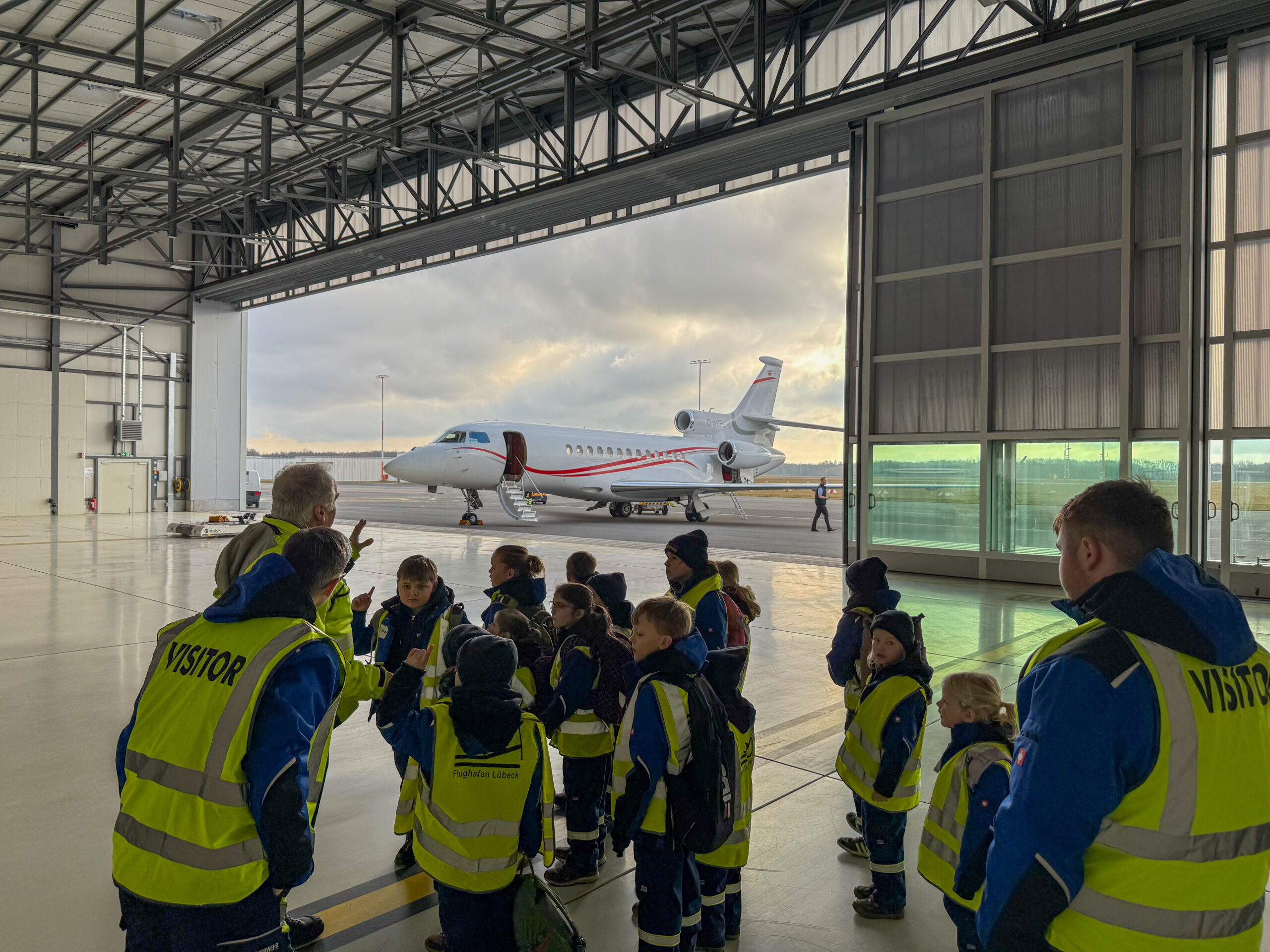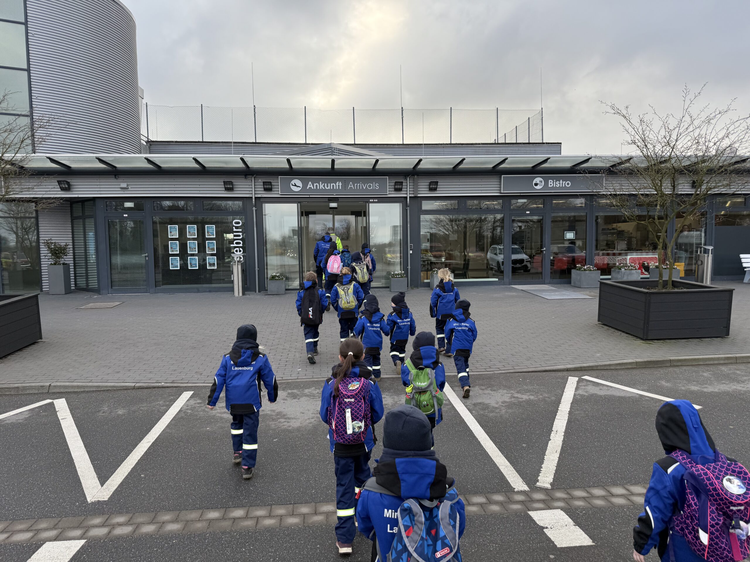 Heute ging es zum Flughafen Lübeck. Die Mini-Retter hat die Möglichkeit hinter die Kulissen eines Flughafens zu schauen. Nach einer Sicherheitskontrolle gab es erstmal ein paar historische Informationen zum Flughafen. Dann ging die Erkundungstour los. Es wurde der gesamte Weg von der Kofferabgabe bis zum Flugzeug hin verfolgt. Aber halt nicht nur die Bereiche, die man schon kannte, wenn man selbst in den Urlaub fliegen wollte, sondern auch die ganzen Zwischenstationen im Verborgenen. Zum großen Glück landete während ihres Besuchs die Privatmaschine des Flughafenbetreibers. Man konnte sich also so ein Flugzeug mal aus der Nähe anschauen. Der Pilot gewährte sogar einen kurzen Blick ins Innere. Dann ging es weiter zur Flughafenfeuerwehr. Die Mini-Retter hatten das große Glück sich das ganz neue Flugfeldlöschfahrzeug anschauen zu können. Der „Panther“ ist erst seit kurzem im Dienst. Nach einem kleinen Rundgang außen herum konnte auch einmal in der Kabine Platz genommen werden. Des Weiteren war für jeden eine kurze Mitfahrt möglich. Damit endete auch schon die Besichtigung. Auf dem Rückweg wurde noch einer Zwischenstopp für eine Kugel Eis gemacht.