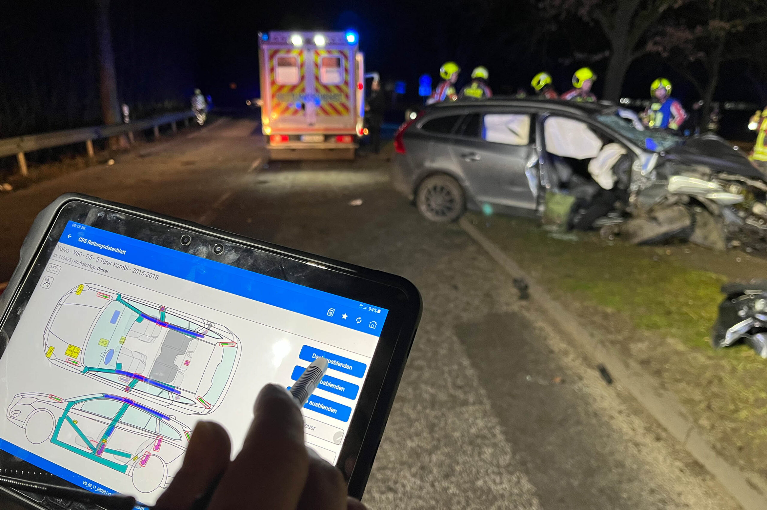 Auf allen Großfahrzeugen verfügen wir über Tablets, die den Einsatz unterstützen. Neben der Funktion der Telefonie steht auch Internet auf allen Geräten zur Verfügung. So kann die Kommunikation zur Leitstelle sichergestellt werden. Zudem können immer komplexere Einsatzlagen und Szenarien durch das Internet unterstützt werden. Automatisiert wird bei einem Alarm der Einsatzort auf dem Tablet angezeigt, Rückmeldungen der Mitglieder und Informationen der Leitstelle werden angezeigt. Auf den Tablets findet sich außerdem eine Gefahrgutdatenbank. Das Tablet vom HLF ist ein spezielles „Outdoor Tablet“. Die App: CRS Viewer ermöglicht es uns Datenblätter von brennenden oder verunfallten Fahrzeugen einzusehen. Wo sind Verstärkte Materialen oder Gasgeneratoren verbaut. Wie wird die Motorhaube geöffnet oder wo sind Trennstellen bei Elektrofahrzeugen? All das kann mithilfe der App rasch ermittelt werden. Durch die Leitstelle kann beim Kraftfahrtbundesamt das Kennzeichen abgefragt werden, daraus ermittelt die Leitstelle einen Zahlencode, welcher der Feuerwehr mitgeteilt wird. Anhand dessen kann die richtige Rettungskarte bereits auf Anfahrt eingesehen werden.