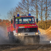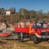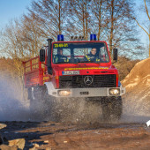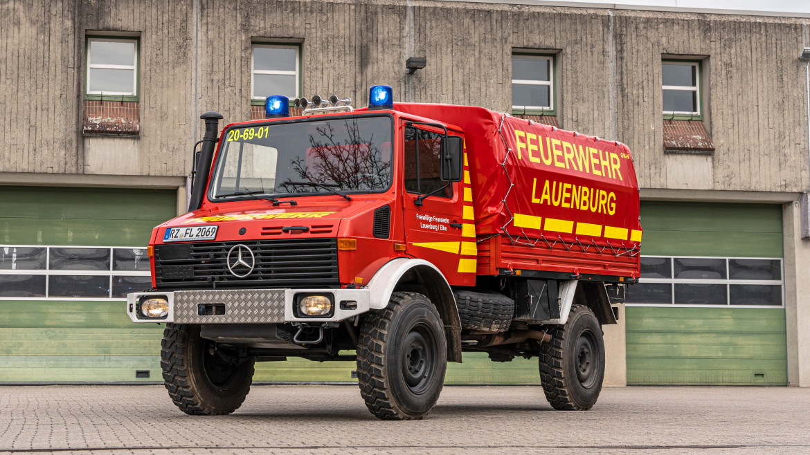 Aus Beständen der Bundeswehr übernahm die Feuerwehr Lauenburg 2015 einen Unimog 1300L. Dem einen oder anderen ist dieses Gefährt wohl noch als "2 tonner" von früher ein Begriff. Das Fahrzeug wurde in Eigenleistung demilitarisiert und für den Einsatzdienst umgebaut. Auch die Lackierarbeiten wurden durch Mitglieder der Feuerwehr tatkräftig unterstützt. Das Fahrzeug verfügt über eine enorme Geländefähigkeit. Das enorm hohe Fahrgestellt ermöglicht eine Wattiefe von 90cm. Auf der Ladefläche können Gerätschaften mit einem Gabelstapler verlastet und transportiert werden. Das Fahrzeug wird als Gerätewagen Nachschub geführt und zudem als Zugfahrzeug für das Motorrettungsboot genutzt.