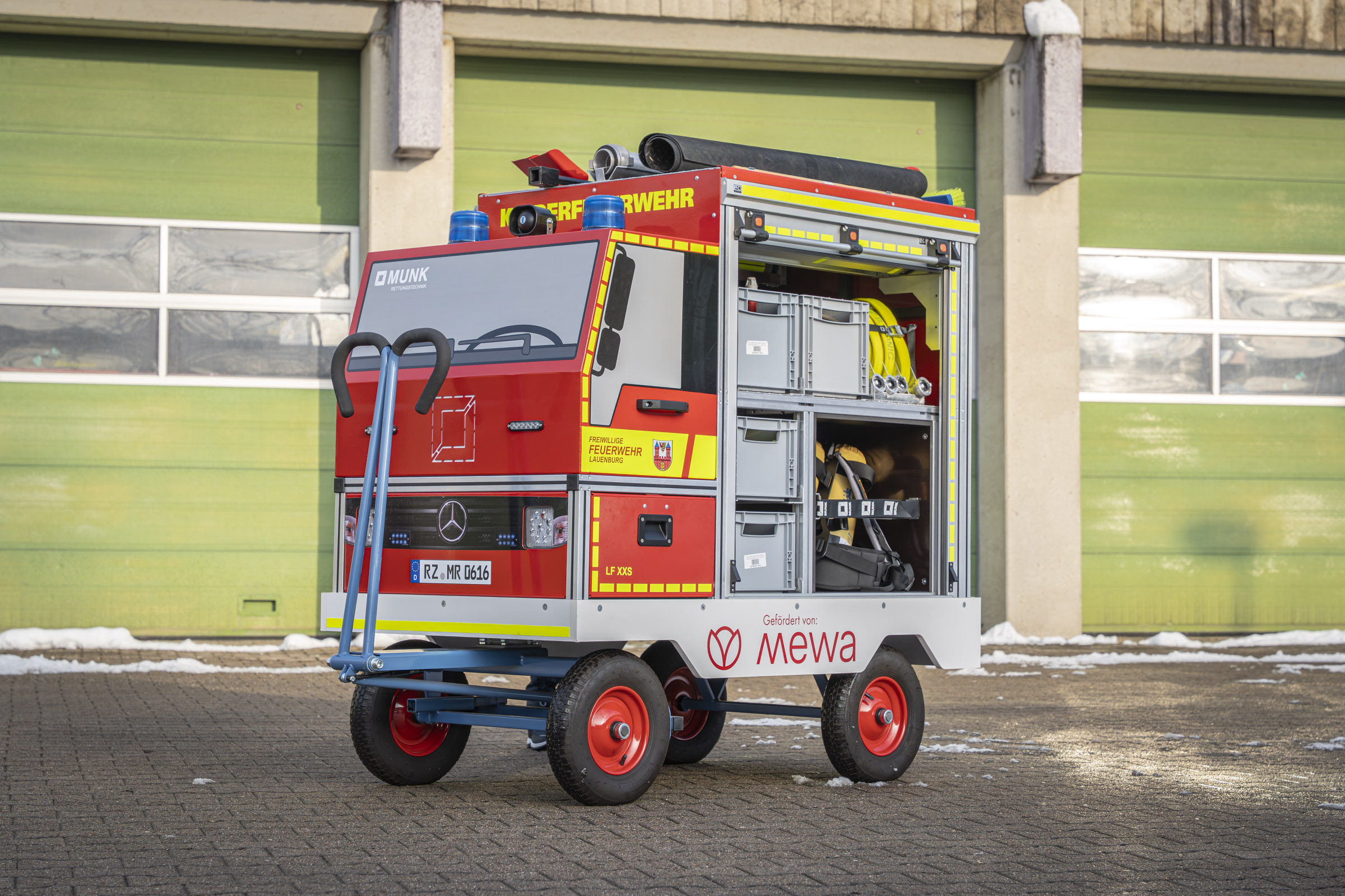 Mit Unterstützung der Firma Mewa beschaffte der Förderverein 2024 ein Fahrzeug für die Mini-Retter. Die Kinder im Alter von 6-10 Jahren treffen sich alle 2 Wochen Samstags. Bei den Diensten üben die Kinder auch Aufgaben der Feuerwehr natürlich in einfacher Form. Das „LF XXS“ (abgekupfert von unserem LF 10 XXL) ist ausgestattet mit Schläuchen und Strahlrohren. Auch zwei Atemschutzgeräte für Kinder sind verlastet. Auf dem Dach befinden sich Schaufel, Besen sowie Standrohr und Hydrantenschlüssel. Ausgestattet mit Blaulicht und Martinshorn ist das Fahrzeug ein absoluter Hingucker und das Highlight für die Kinder.