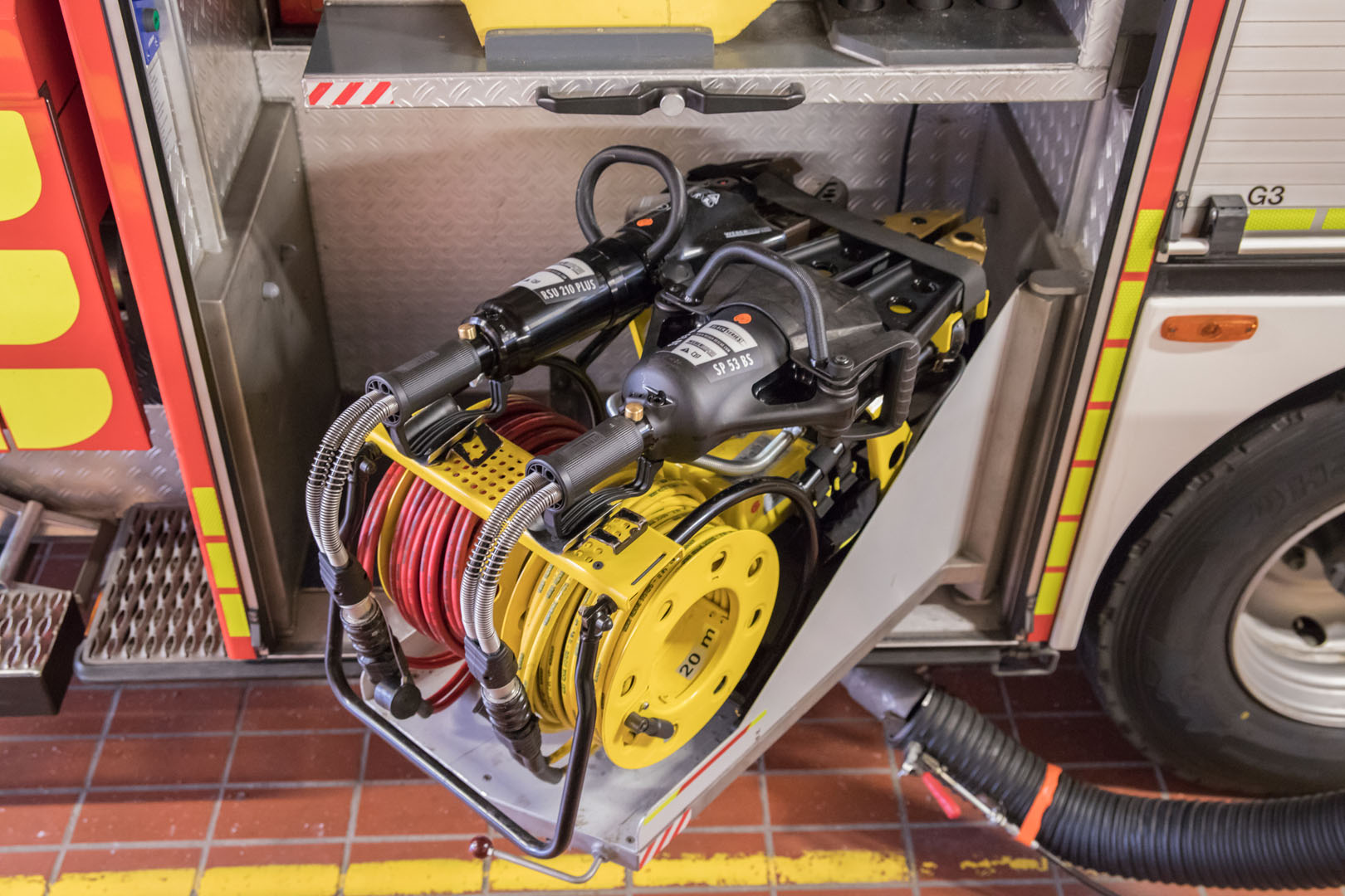 Auf dem HLF (Hilfeleistungslöschfahrzeug) sowie dem TLF (Tanklöschfahrzeug) der Lauenburger Feuerwehr wird ein Rettungssatz mitgeführt. Der Hydraulische Rettungssatz besteht aus mehreren Komponenten und kommt zum Beispiel bei der Befreiung einer eingeklemmten Person nach einem Verkehrsunfall zum Einsatz. Neben Rettungszylindern in verschiedenen Länge zählen Schere und Spreizer zu den Hauptbestandteilen des Rettungssatzes. Angetrieben werden alle Geräte durch eine strombetriebenes Hydraulikaggregat. Spreizer: SP 53 BS Der Spreizer stammt aus der Baureihe „Team Gold“ von Weber-Rescue und zählt damit zu den leistungsstärksten auf dem Markt. Viele Neuerungen fanden Einzug in diese Baureihe, so sind an den gehärteten goldfarbenen Spitzen Spike montiert, die das ungewollte Abrutschen des Werkzeuges verhindern. Mit einem Gewicht von 20,3kg ist er deutlich leichter als sein Vorgänger und um einiges leistungsstärker.