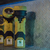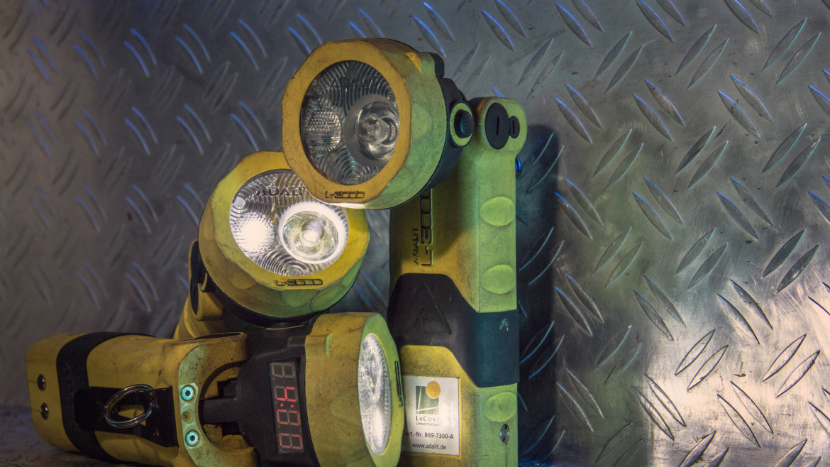 Für die Arbeit im Brandrauch und bei Dunkelheit sind geeignete Leuchtmittel unabdingbar. Längst sind alte Handlampen mit Halogenbirnen überholt. Deshalb setzen wir auf modernste LED Technik. Die Adalit L-3000 Knickkopflampen sorgen für maximale Ausleuchtung bei geringstem Verbrauch. Mit einem Klipp kann die Lampe an unseren Einsatzjacken befestigt werden, die Hände sind somit frei und stehen für die Arbeit oder die Suche nach vermissten Personen zur Verfügung. In verschiedenen Winkeln kann der LED Strahler eingestellt werden, 90° , 45° oder gerade nach oben. Ob beim kriechen über den Boden oder der Arbeit in engen Bereichen passt sich die Lampe so stets optimal an. Verschiedene Blitzmuster können über die zwei am Lampenkopf befindlichen Druckknöpfe eingestellt werden, Strobe, Blinklicht oder Dauerleuchten erweitert den Einsatzbereich der Lampe etwa für die Absicherung einer Einsatzstelle. Um Einsetzbarkeit zu verlängern, können drei verschiedene Energiestufen ausgewählt werden, so stehen neben 4 Stunden unter Volllast, auch 6- und 8 Stunden Akkubetrieb zur Verfügung. Mit einem Weitwinkel und einem gerichtetem Strahl sorgt die Lampe für eine gleichmäßige Ausleuchtung. Ob im freien oder im Brandrauch, durch die Linsen im Kopf bringt diese Lampe Licht ins Dunkel.