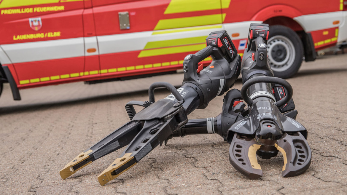 Um im Einsatz schneller und flexibler Hilfe leisten zu können, setzt die Lauenburger Feuerwehr auch auf Akku-Technik. Durch den "Kabellosen" Einsatz, können die Geräte schnell und unkompliziert zum Einsatz kommen. Die Geräte haben eine wechselbaren Akku, integrierte Öl-Pumpen und Vorratsbehälter. Ebenfalls aus der Serie "Team-Gold" von Weber Rescue stammend verfügen sie über gehärtete Materialien. Auch Spikes an der Spitze des Spreizers vereinfachen den Einsatz. Durch die kleinen Spitzen verbeißt sich das Werkzeug im Material und verhindert so ein abrutschen.