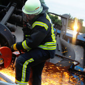 Für den schweren Einsatz führen wir auf dem HLF einen Motortrennschleifer mit. Massive Metallteile können damit durchtrennt werden. Auch Zugänglichkeiten durch Metallverkleidete Wände können so geschaffen werden. Immer dann wenn eine Flex nicht mehr ausreicht, kommt der „große Bruder“ zum Einsatz. Das Motorbetriebene Aggregat muss mit äußerster Vorsicht betrieben werden, da die hohe Drehzahl bei Unachtsamkeit schnell zu Verletzungen führen kann.