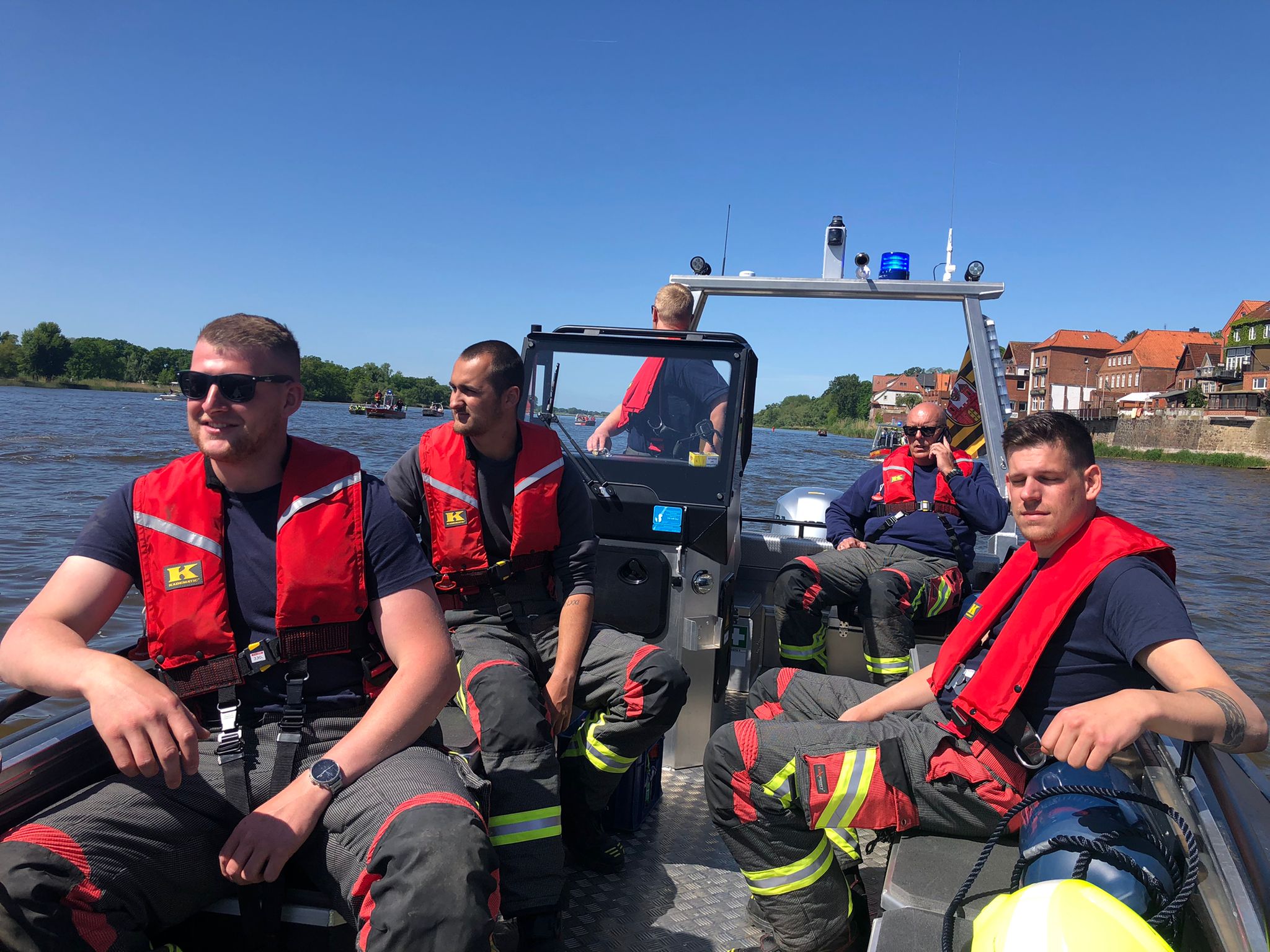Direkt an der Elbe gelegen, sind Boote bei der Lauenburger Feuerwehr nicht wegzudenken. Deshalb stehen der Wehr drei Einsatzboote zur Verfügung, wobei das Arbeitsboot „Elbe 1“, sowie das Mehrzweckboot „Ölwehr“ (MZB) vom Kreis für die Durchführung der Ölwehr bereitgestellt werden. Ein weiteres Rettungsboot (RTB) wurde von der Stadt Lauenburg in Dienst gestellt, um diverse Einsatzlagen auf der Elbe schnell zu erreichen. Im Jahr 2025 sind zu den bestehenden Bootsführern 11 neue Bootsführer von der Wehr ausgebildet worden, dadurch steht der Wehr nun eine schlagkräftige Truppe an Bootsführern für Einsätze zur Verfügung. Verschiedene Szenarien erwarten die Einsatzkräfte, so ist zum Beispiel die Eingrenzung von Gewässerverunreinigungen vertraglich an die Feuerwehr Lauenburg durch den Kreis Herzogtum Lauenburg vergeben. Mit geeigneten Mitteln, wie Ölsperren oder Absorberschläuchen werden die Ausbreitungen eingedämmt. Um die Technik auch Landesübergreifend einzusetzen, finden auch Übungen mit den Nachbargemeinden aus Niedersachsen statt. Doch auch zur Brandbekämpfung können die Boote eingesetzt werden. Auf dem Neuesten der 3 Boote (MZB) ist eigens eine Befestigung für eine Tragkraftspritze verlastet. Über einen Löschmonitor, kann das über den Rumpf des Bootes angesaugte Wasser direkt abgeben werden. Auch zur Unterstützung des Rettungsdienstes werden die Boote eingesetzt, hierbei ist das unwegsame Gelände zwischen Lauenburg und Grünhof das Haupteinsatzgebiet unserer Wehr. Der Transport von verletzten Wanderern am steilen Elbhang zählt immer wieder zu den Einsätzen der Rettungsboote. Dabei wird der Rettungsdienst beim Abtransport über das Wasser zu einer geeigneten Übergabestelle transportiert. Bei den Bootsdiensten trainieren die Bootsführer diese Szenarien, damit im Einsatzfall die Techniken beim Anfahren von flachen und schlecht zugänglichen Anlegestellen bekannt sind und diese Manöver sicher durchgeführt werden können.